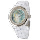 Kristall-Uhr für aquamarin- und Goldmarmor - Weiße Armbanduhr