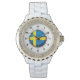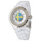 Kristall White Enamel Watch - Schweden-Flagge Armbanduhr