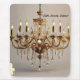 Dieses beeindruckende Bild zeigt einen ikonischen Kronleuchter mit seinen faszinierenden Kristallen und strahlenden Lichtern, die in feinen Linien sehr detailliert sind. Der in goldenen Farbtönen geblümte Kronleuchter verkörpert Luxus und Eleganz und schafft ein faszinierendes Zusammenspiel von Licht und Schatten vor einem weichen, hellen Hintergrund. "Das Originalbild wurde von Meta AI erstellt. AI generierte Kunstwerke. Lizenziert unter CC BY-SA 4.0.