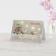 Kristallrentierkran in der Nähe eines Weihnachtsbaumes mit hellen Ornamenten. Weihnachten, Feiertage Grußkarte.