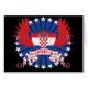 Kroatische Flagge auf einem Hintergrund der angekündigten Flügel. Grunged heraus und entworfen, Ihren Kroaten vorzuführen wurzelt.