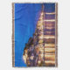 Malerei der Stadt Sibenik in Kroatien. Beleuchtete Stadt mit Festung, alten Gebäude, Meer und blauen Himmel. Der Hafen von Sibenik, Kroatien am Abend, Blick zur blauen Stunde auf der Festung St. Michael