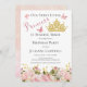 "Unsere süße kleine Prinzessin dreht sich um drei" "Geburtstagsparty" Design mit Farbverlauf unbearbeitbaren Drehtext für "Prinzessin" mit einem Imitat Gold Glitzer Tiara Kronen, rosa Farbverlauf Schmetterlinge und auf den unteren Imitaten Gold Glitzer betont rosa Rosa Blumenrahmen. Fügen Sie einfach Party-Details hinzu, um das Design zu vervollständigen.