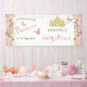 "Eine süße kleine Prinzessin ist auf ihrem Weg" "Baby Shower" Design mit Gradientenungleichschrift für "Prinzessin" und "Baby Shower" mit einem Imitat Gold Glitzer Tiara Kronen, rosa Gradienten Schmetterlinge und flankiert auf beiden Seiten von Imitaten Gold Glitzer betont rosa Rosa Blumenrahmen. Fügen Sie einfach den Namen der Mama hinzu, um das Design zu vervollständigen.