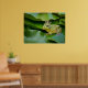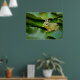 Digital vergrößerte Aufnahme eines Frosches mit einer Krone, sitzend auf einem Lilienpolster, umgeben von Lilienpolstern.