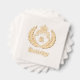 Auf einem Wappen, das von einem Lorbeerkranz gerahmt ist, mit einem Monogramm bedampft und mit einer Krone überragt wird, in dem Jahr, in dem Ihre Familie an der Spitze steht, und darunter Ihr Familienname in gotischen Buchstaben. Traditionelle Goldfoliennapkins aus Familienwappen, perfekt für Hochzeiten, Hochzeitsfeiern, große Geburtstage und eine elegante Touch für Party und Abendessen. Mit Monogramm Servietten-Folie mit einem Familienwappen mit einem Lorbeerkranz, Krone und Ihren ersten.