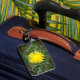 Ein einfaches und doch schönes Gepäck und Taschenmarke. Naturliebhaber freuen sich über dieses Foto eines Kronleuchters, umgeben von Nelken.