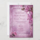 Eleganter, maßgeschneiderter Hochzeitskunst-Empfang mit hübscher, femininer, rosafarbener, lila und lila Shabby Chic-Kollektion aus Vintagem Holzeffekt mit einem schönen, glamourösen verziert rosa Kronleuchter, bedruckten Blume, Blätter, verziert Schnörkel, Wirbel, Tasseln und einem niedlich, romantischen, rosa Herz, das an einer Kette hängt. Diese trendigen, eleganten, raffinierten und blumengeschmückten Möbel verleihen dem Gast ein altmodisches elegantes Aussehen und eignen sich besonders für Frühjahr- und Sommerveranstaltungen, aber auch perfekt für Herbst/Herbst und Winter. Stilvolle, altmodische, rustikale Landschaftsthemen laden mit einer modernen, zeitgenössischen glamourösen Drehung ein, die auf beiden Seiten schön dekoriert ist. Der gesamte Text kann leicht an Ihre Bedürfnisse angepasst werden und Sie können den Schriftart Stil, Farbe und Größe des Schriftartes ändern, wenn Sie möchten. Wenn Sie Hilfe bei der Anpassung Ihres Produkts benötigen, kontaktieren Sie mich bitte über meinen Shop und ich werde Ihnen gerne helfen. Ich habe passende Produkte in meinem Geschäft.BEACHTE: Alle Einladungen auf Zazzle haben flache gedruckte Bilder.