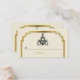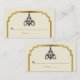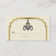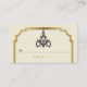 Kronleuchter und Art-Déco-Platzkarte, beige Hochzeitssitze, mit einem Vintagen schwarzen Kronleuchter und einem schwarzen, goldenen Rahmen im Art-Déco-Stil auf Beige-Beige-Muschel. Dieses elegante und raffinierte Template-Design ist Teil eines Hochzeitsvorlagendesigns und fügt Ihrer Hochzeit einen Touch-Luxus und Glanz hinzu.