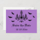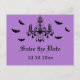 Ein unheimlicher Kronleuchter und eine Gruppe Fledermäuse betonen dieses Halloween-Save the Date.