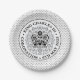 Schwarz-Weiß-Teller zeigen das offizielle KrönungsEmblem des Königs Charles III 2023