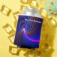 Die Wissenschaft sagt uns, dass der Raum gekrümmt ist ist. Und so ist es. Ein mehrfarbiges Fraktal-Bild von konzentrischen Schleifen, das auf einem sternenförmigen Hintergrund überlagert wird. Fügen Sie Ihren eigenen Text hinzu.