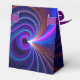 Die Wissenschaft sagt uns, dass der Raum gekrümmt ist ist. Und so ist es auch. Ein mehrfarbiges Fraktal-Bild von konzentrischen Schleifen, das auf einem sternenförmigen Hintergrund überlagert wird.