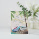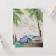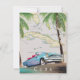 Illustrierte Karte von Kuba (mit den umliegenden Inseln) in einem Vintagen, detaillierten Stil mit einem klassischen alten Kubanauto bei Sonnenuntergang.