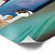 Illustrierte Karte von Kuba (mit den umliegenden Inseln) in einem Vintagen, detaillierten Stil mit einem klassischen alten Kubanauto bei Sonnenuntergang.