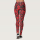 Eine Frau in trendigen abstrakten Leggings in Schwarz und Rot, die das moderne kubische Interferenzdesign für einen schicken Look präsentiert.