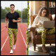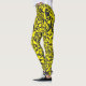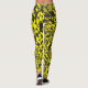 Eine Frau in trendigen, schwarz und hellgelben abstrakten Leggings, die das moderne kubische Interferenzdesign für einen schicken Look präsentiert.