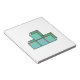 Notepad mit arrangierten Würfeln in Blau und Grün