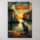 Kubistische Katze: Sonnenuntergang in Venezianisch Poster