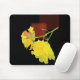 Gelbe Rosen aus meinem eigenen Garten, die eine Cartoon-Drehung für Ihr absolutes Vergnügen! Gelbe Blumen auf schwarzem Hintergrund mit verblassten roten Würfeln in der Ferne