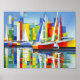 Kubistische Segelboote im farbenfrohen Hafen Poster