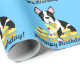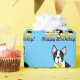 Spaß und wunderliches alles Gute zum Geburtstag! Boston Terrier mit gelbem Kuchen-Packpapier
