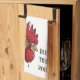 "Segen all derer, die hier wursteln" ist die Beschriftung auf diesem Küchentuch mit einem weißen Hühnerkopf. Passen Sie dieses Objekt an oder kaufen Sie es wie gezeigt. Börsenbild freepik.com