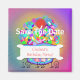 Ein farbenfroher und leckerer Kuchen! Das ist eine Save the Date Erinnerung für eine Geburtstagsfeier. Vollständig anpassbar. Sehr skurril und farbenfroh, perfekt für ein lustiges und fröhliches Gefühl für Ihre Gäste.