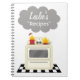Ein Rezeptnotizbuch, das eine Illustration eines retro inspirierten Ofens sitzt auf einer Schwarzweiss-Oberfläche kennzeichnet. Roter Topf und Wanne auf Ofen haben Flammen, von ihnen und von den Schwebeflügen einer Rauchwolke über dem Ofen zu schießen. Eine große Weise, an Ihrem eigenen Mangel an kulinarischer Fähigkeit zu lachen….reccomened nicht als Geschenk für andere! Personifizieren Sie mit Ihrem Namen.