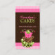 © Persönlichkeit des öffentlichen Lebens-Entwürfe 2012. Bunte und Spaßkunstkuchen-Bäckerei-Visitenkarten mit Damasthintergrund. Eine wunderbare Visitenkarte für eine Kuchendesigner- oder -spezialitätenbäckerei. Presse "fertigen sie" Knopf zur Änderungs-Schriftartart, zur Schriftartfarbe und zur Ausrichtung besonders an.