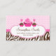 © 2012 Socialite Designs Inc. Whimsical Bäckerei Business Card Design hat unsere Kuchen und Kuchen Pop Design Elemente mit Polka-Dot und zebra Streifen Hintergrund. Ein niedliches Polka-Dot Band vorne und hinten. Alle Designs sind urheberrechtlich geschützt. Die meisten unserer Designs werden von Socialite Designs erstellt und sind urheberrechtlich geschützt. Sie können nicht kopiert, gescannt, Derivate daraus hergestellt, verändert, vervielfältigt, fotografiert, Screenshots gemacht oder gestohlen werden, die im Web, wo die Designs gezeigt werden, gemacht werden. Unsere Designs werden nur auf Zazzle verkauft. Wenn Sie eines unserer Designs finden, oder ein Derivat eines unserer Designs, das unrechtmäßig im Web verwendet wird, kontaktieren Sie uns bitte. Das Herunterladen, rett oder Wiederverkauf urheberrechtlich geschützter Materialien ist untersagt und führt zu einem Rechtsstreit. Das Scannen von Druckerzeugnissen, die Sie über Zazzle erworben haben, ist untersagt.