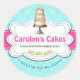 © 2023 Socialite Designs Inc. Siegel in farbenfrohen und eleganten Kuchenbackkasten mit Hochzeitskuchen, Damast-Hintergrund und Polka-Dot Band-Design.