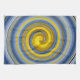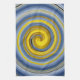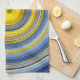 Die gelb-blaue Spirale mit feinen grauen und schwarzen Linien ist das Design dieses Küchentuchs.