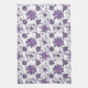Dieses Küchentuch wird in einem hübschen violetten Blumendruck gezeigt. Farbe Weiß, Lila Passen Sie dieses Objekt an oder kaufen Sie es wie gezeigt. Börsenbild vecteezy.com