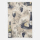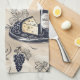 Ein elegantes, modernes Küchenhandtuchdesign mit eleganten Weingläsern, Weinflaschen, Weintrauben und Käseplatten, Set vor einem neutralen Hintergrund für ein elegantes Ambiente
