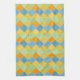 Ein hübsches Küchentuch oder Teetuch, mit einem Imitat-Flickwerk aus Daffodil-Drucken, Polka Dots und Karo Ginghams in Grün, Orange, Gelb und Weiß. Teil der Posh & Painterly 'Daffy-down-Dillies' Kollektion.