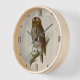 Die Natur inspirierte rund um die Uhr, mit der grafischen Kunst einer Eule auf einem Zweig, vor einem hellen Holzhintergrund. Eine tolle Geschenkidee für jeden Vogelliebhaber.