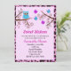 Sehr hübsch Geburtstag Einladung mit Eule auf Zweig in rosa Leoparden Rahmen. Personalisieren Sie Text, Schriftart und Farben auch Sie bevorzugen.