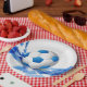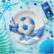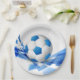 Party Papierplatte mit einem Sportsoccer-Druck gezeigt.