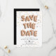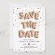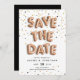 Einzigartige Hochzeit speichern Sie die Dattelkarten Funktion "SAVE THE DATE" in Rose Goldballons, auf einem Hintergrund von Rose Gold, Gold und schwarzen Konfetti. Personalisieren Sie Ihre Hochzeitsdetails unten, einschließlich Datum, Ort und Ihre Hochzeitswebsite, oder ein Hinweis darauf, dass eine formelle Einladung folgen wird. Karten werden in schwarz umgekehrt.