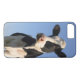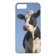 Attraktive schwarz-weiße Kuh über einem blauen Himmelshintergrund