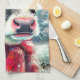 Kuh Dreaming der wärmeren Zeiten Aquamarin Rote Fl Geschirrtuch