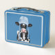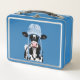 Die Abbildung zeigt eine schwarz-weiße Kuh, die einen blauen Winterhut mit Ohrenklappen und geflochtenen Fäden trägt. Das Bild verbindet Elemente des Landlebens mit einer humorvollen Drehung, die die Kuh in einem unerwarteten Stil darstellt, der dem Bild einen einzigartigen Charme verleiht.