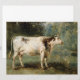 Dieses Design zeigt ein Gemälde des französischen Künstlers Constant Troyon (1810-1865). Es zeigt eine große Kuh in einer ländlichen Landschaft. Das Tier ist von Grünpflanzen umgeben. Die Kuh hat eine weiße Haut mit braunen Markierungen; sie hat kleine Hörner und einen langen Schwanz. Dieses Gemälde zeigt das Nutztier schön und natürlich.