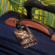 Kuh-Junge lädt Sporn-Land-Seil-hölzernes Kornrustikalen Lasso-Monogramm-Initialen-Gepäckanhänger auf