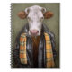 Dieses Ausrüstungsbeschreibungen ein Porträt einer Kuh in einer Lederjacke und in einem Schal.