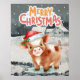 Kuh mit Weihnachtsmannmütze im Winter Poster