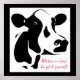 Poster mit einem Schwarz-Weiß-Jersey-Kuh-Druck, schwarzen Rändern und einem sass Kommentar. Ideal für Spaß oder Küche. Wählen Sie die gewünschte Textfarbe aus, aber in Rot. Passen Sie dieses Objekt an oder kaufen Sie, wie es ist. Bild