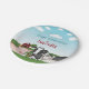 Desteis originelle Cartoon-Abbildung von Nutztieren. Es gibt eine schwarz-weiße Kuh, ein rosa Schwein, zwei Hühner und ein Schaf. Im Hintergrund befindet sich eine rote Scheune mit einem Baum und etwas Heu auf grünen Wiesen. Der Himmel ist blau mit ein paar Wolken. Es gibt auch zwei personalisierbare Textbereiche.