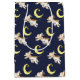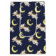 Niedlich springende Kuh und glücklicher Mond wiederholen gemustertes Gewebepapier. Die Hintergrundfarbe kann bei Bedarf geändert werden, wenn derzeit dunkelblau angezeigt wird. Original Aquarellmalerei und Musterdesign von Sarah Trett für www.mylittleeden.com